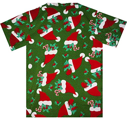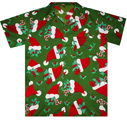 -. Title : Funky Hawaiian Shirt Men Short-Sleeve Front-Pocket Christmas Santa Hats Green