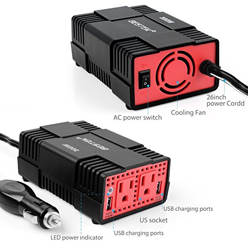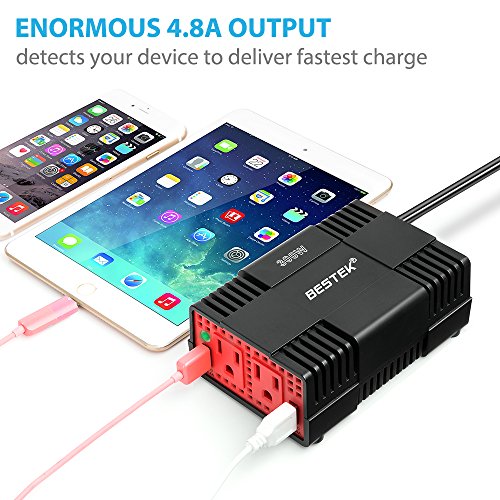 Smart Charging: the power inverter is equipped with 2 Smart USB charging ports, automatically detect your devices to deliver its fastest charge speed up to 2.4 amps per port/4.8 amps max