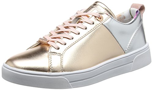 Studio : Ted Baker Publisher : Ted Baker Binding : Apparel Product Description A cool cupsole lace up trainer featuring a fun and fashionable mix of smooth leather, snake emboss and mirror metallic. Featuring a signature printed sock, branded metal eyelets and metal heel plaque. 0