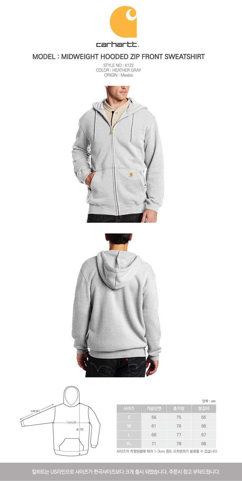 CARHARTT Hoodie K122-HGY HEATHER GRAY