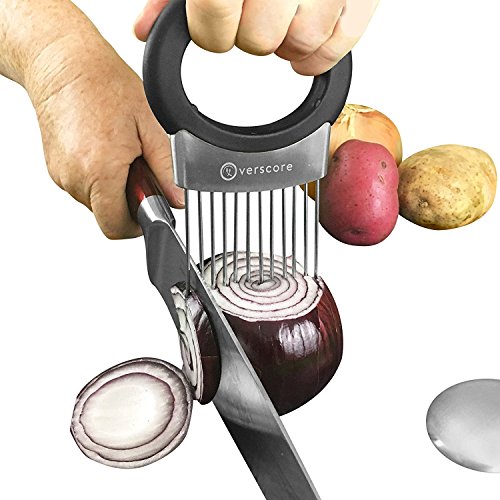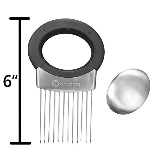 Onion Slicer Holder - Stainless Steel - Fruit, Vegetable & Meat Holder - Detachable Stainless Steel Oder Remover Included