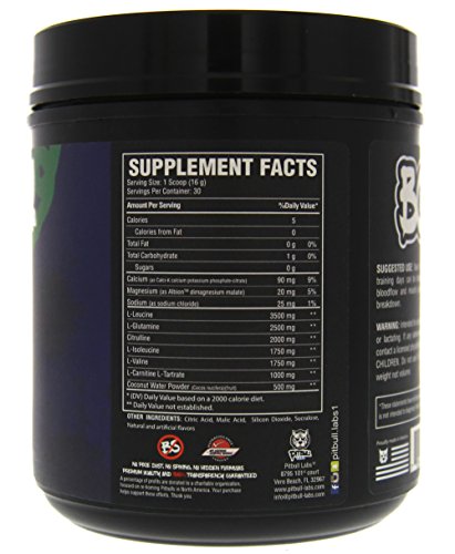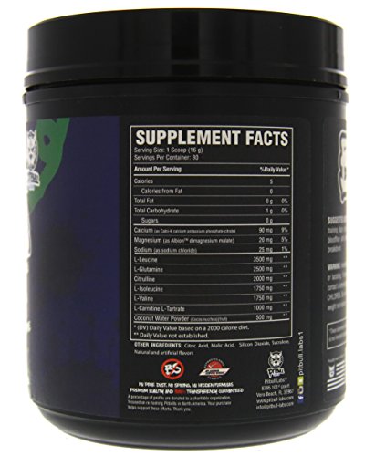 Pitbull Labs® BCAA also has 2.5g of L-Glutamine to further support recovery and 2g of L-Citrulline to increase Nitric Oxide (N.O.) levels in the blood and improve performance.