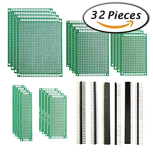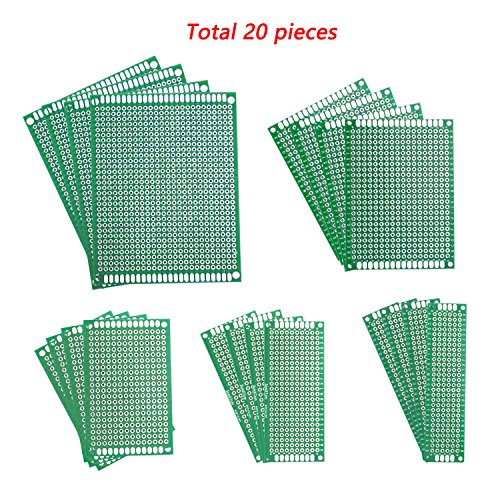 Prototype PCB Board, Aimotec 5 Sizes 20 Pcs Double-Sided PCB Board Prototype Kit with 12 Pcs Header Connector for DIY