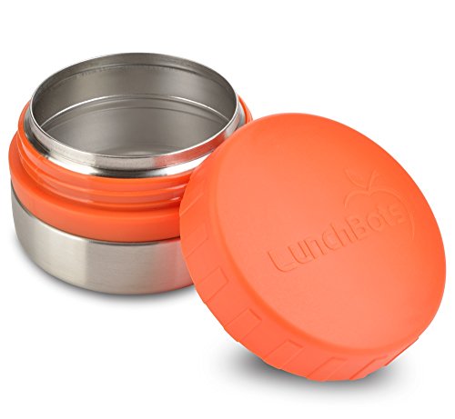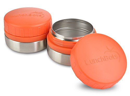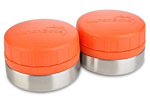 LunchBots Rounds Leak Proof 4 oz. Stainless Snack Container Jar, Set of 2, Orange Lid