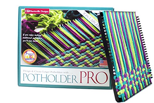 - Harrisville Designs Potholder PRO Kit includes a sturdy metal 10.25" x 10.25" potholder loom, which makes an 8.5" x 8.5" potholder