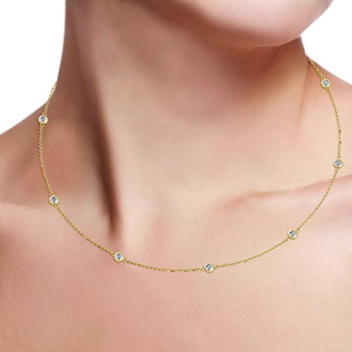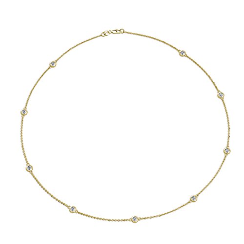 -. Feature : 0.65 ct tw Diamond by the Yard Cable Chain Necklace in 14K Yellow Gold. / 9 Round Diamond set using Bezel Setting. / SI2-I1-Clarity, G-H-Color Diamond. / All our Diamonds to our Best Knowledge are not Conflict Diamonds.