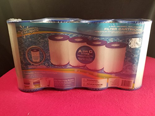 Summer Escapes Universal Replacement Swimming Pool Filter Cartridges - A or C Type (4-Pack) - RP800, RP1000, RP2000, SFS1000, SFS2000 + More