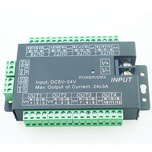 RGBSIGHT High Power 24 Channel 24CH 3A/CH 72A DMX512 Controller LED Decoder Dimmer DMX Signal For DC 5V 12V 24V Project Lighting
