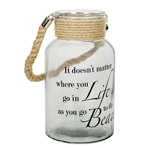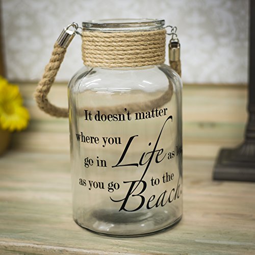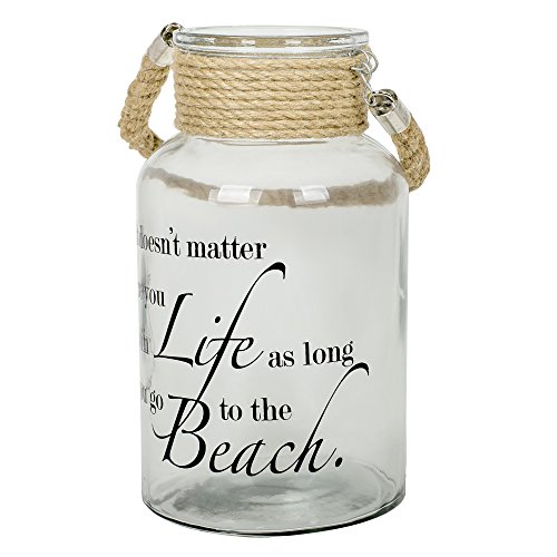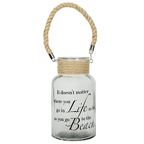 Beach Life 10 Inch Glass Jar Lantern with Twine Rope Handle