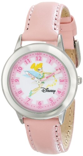 Round Time Teacher Stainless Steel Watch with Disney's Tinker Bell character on dial.
