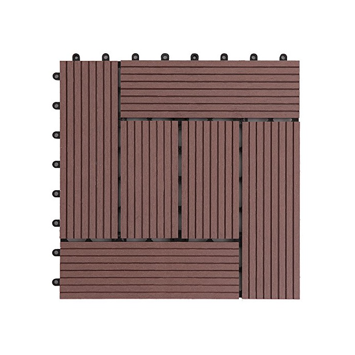 원본상품명:アイリスプラザ ジョイントタイル 十文字溝付 人工木 ブラウン 18枚セット