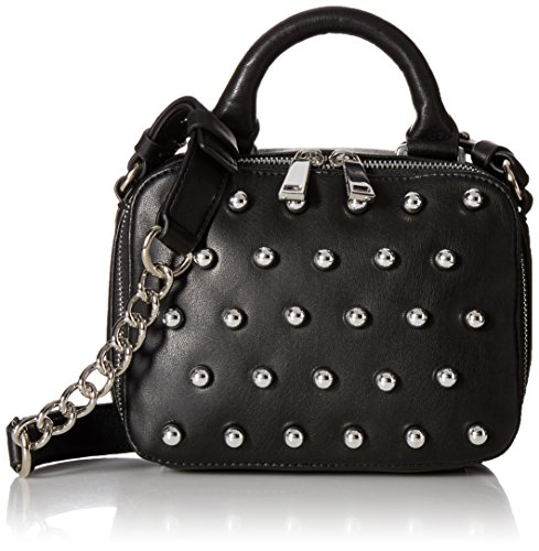 Petite crossbody gets a bold boost thanks to shiny stud trim and features an inner zip pocket, exterior slip pocket; 3" handle drop with adjustable shoulder strap