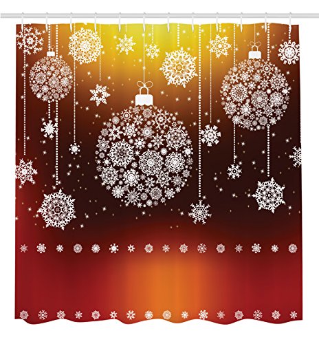 Christmas Shower Curtain Snowflakes by Ambesonne, Snowflakes Shaped Christmas Balls Graphic Classical Festive House Decor Art, Polyester Fabric Bathroom Shower Curtain Set with Hooks, Yellow Orange