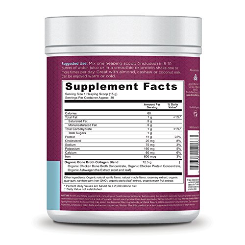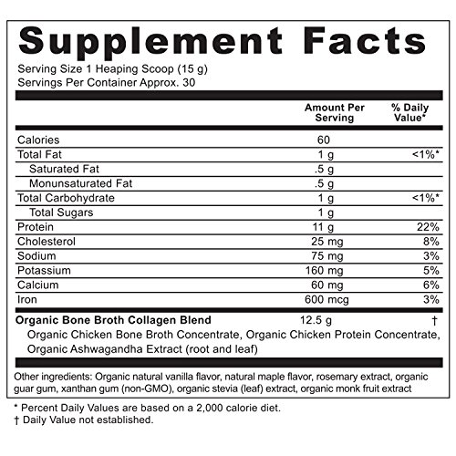 If you want the ultimate low-carb, low-sugar superfood... then this could be the most important collagen protein supplement you'll ever purchase! Organic Bone Broth Collagen Vanilla is an amazing new protein supplement that brings all the benefits of organic, robust, real homemade bone broth AND collagen without having to spend hours boiling bones in your kitchen. For as long as humans have been cooking food over fire, bone broths — chicken, beef, turkey, fish and more — were staples in the traditional diets of every culture. And for good reason. Of course, an overall balanced diet and a healthy lifestyle are critical. But Organic Bone Broth Collagen Vanilla is something we should all consider adding to our diet for these ingredients — ingredients that are incredibly hard to find in just one product.