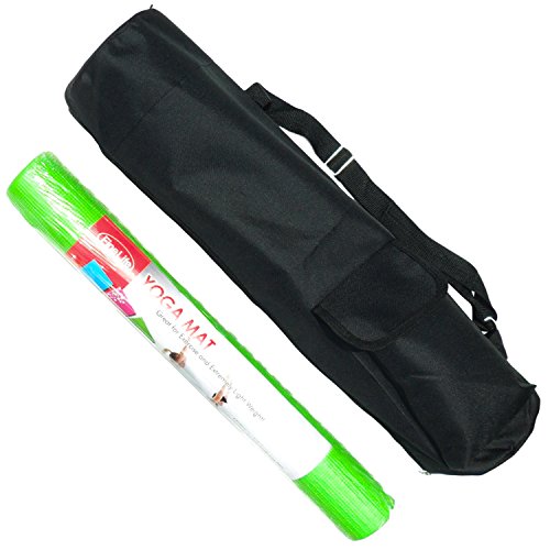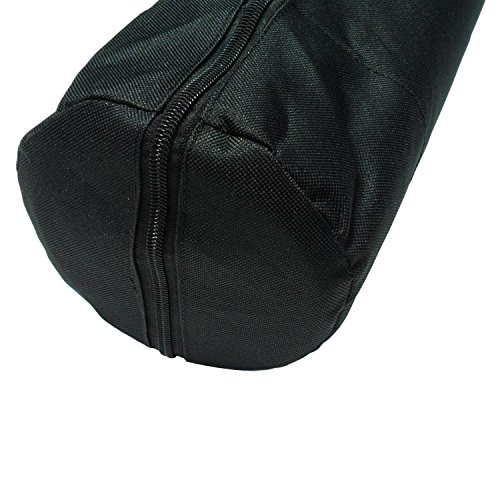 Tote bag is sturdy microfiber construction with zippering closure. Features a cargo pocket for keys or cell phone 9.5" x 6" & velcro closing for easy access. 25" long x 6" diameter; works well with 1/4" or 1/2" yoga mats.