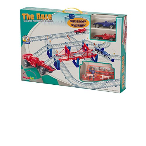 - Feature : Wildly exciting track to build - follow the instructions included or use your imagination / 2 x Red/Blue Electric Race Cars included in set (Batteries not included) / All pieces fit together easily - No tools required / Encourages fine motor skills, creativity, logic and interactive play / Recommended for Ages 3+ / Battery Operated Race Cars Included / Wildly exciting track to build - filled with possibilities / Pieces fit together easily - No tools required