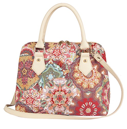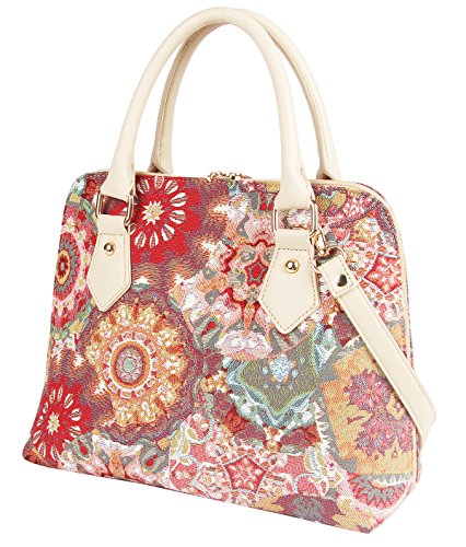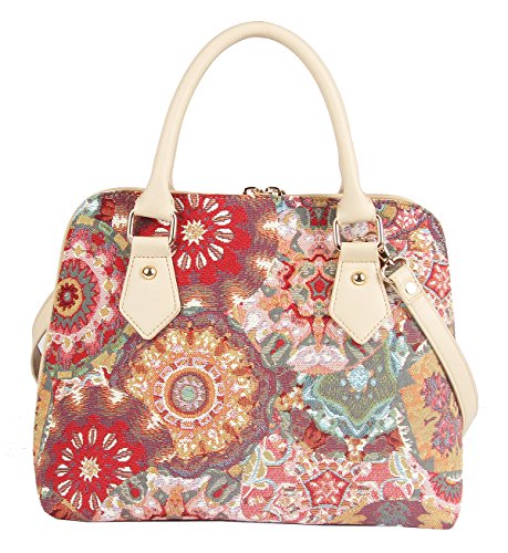 Signare Pink Kaleidoscope Women’s Fashion Canvas Tapestry Top Handle Handbag With Detachable Strap To Convert To Shoulder Bag by (Conv-Kale)