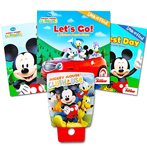 Disney Mickey Mouse Night Light and Storybook Bedtime Set, featuring favorite Mickey Mouse Clubhouse characters! Make bedtime fun for your Disney Mickey Mouse fan with this Mickey Mouse bedtime set -- complete with night light and bedtime story books. The Mickey Mouse night light gives off dim lighting that comforts children without disrupting sleep. Features Mickey Mouse, Goofy, Donald Duck and Pluto. Includes 3 soft cover Disney Look and Find story books featuring Mickey Mouse, Minni Mouse, Donald Duck and other Mickey Mouse Clubhouse characters. This bedtime set is the perfect gift for any Disney and Mickey Mouse Clubhouse fan. Officially licensed Disney Mickey Mouse toys and games products.Feature