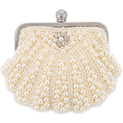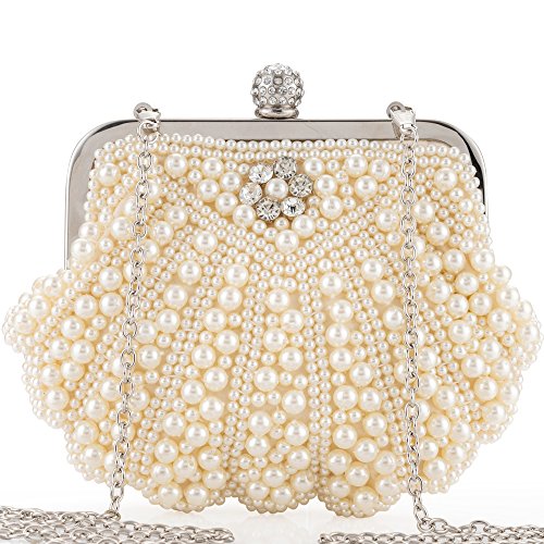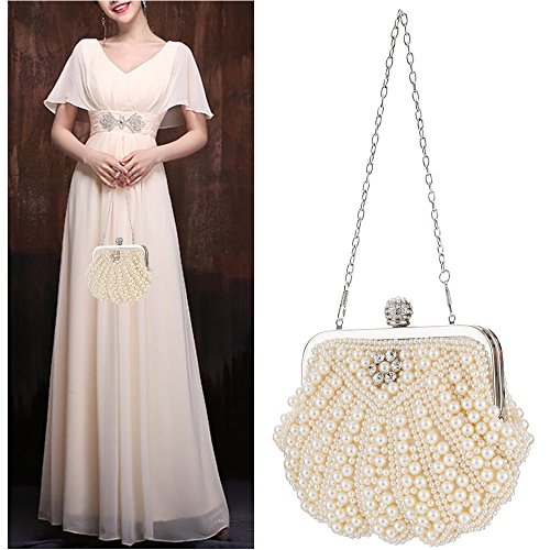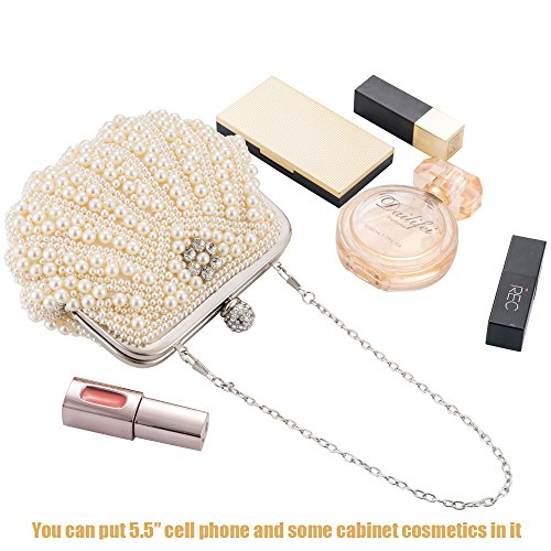 Womens Evening Clutch Bag Full Beaded Artificial Pearls Wedding Bridal Shell Handbag Shoulder Bags