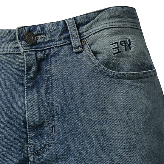 - 내츄럴한 워싱에 데미지 포인트를 준 남성 데님 팬츠.