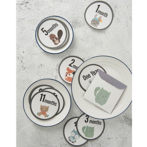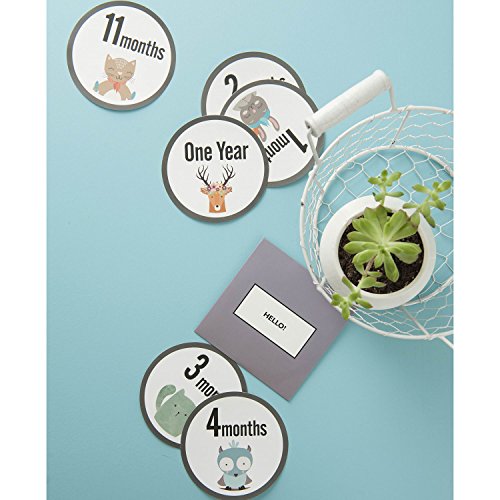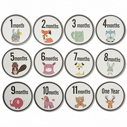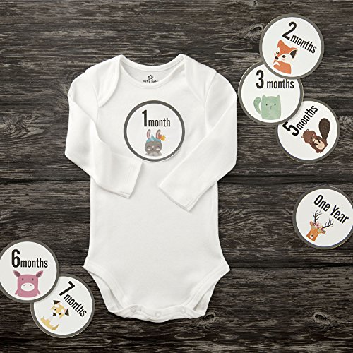 MAGJUCHE Monthly Baby Milestone Stickers Clean Animals, Premium Baby Belly Stickers, First Year, Months 1-12, Shower Gift