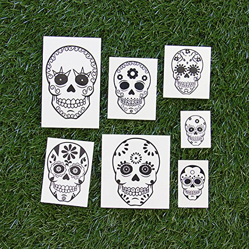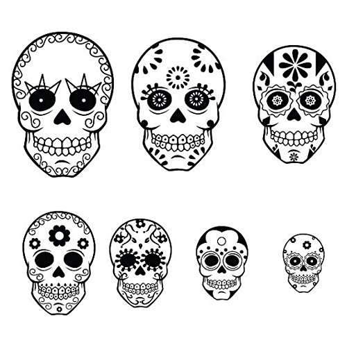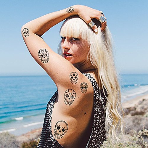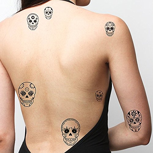 Tattify Various Sugar Skull Temporary Tattoos - Death Wish (Complete Set of 14 Tattoos - 2 of each Style) - Individual Styles Available and Fashionable...