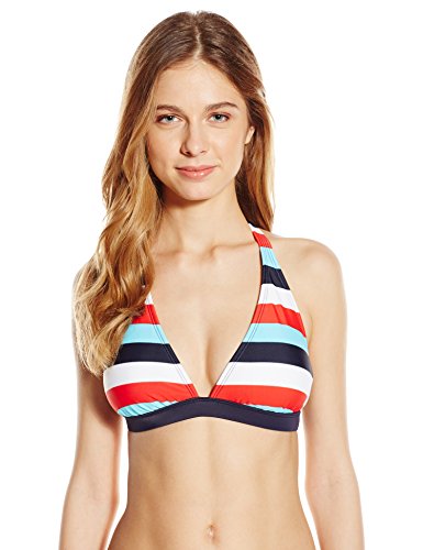 Tommy Hilfiger Women's Slide Stripe Halter Bikini Top, Core Navy, Medium