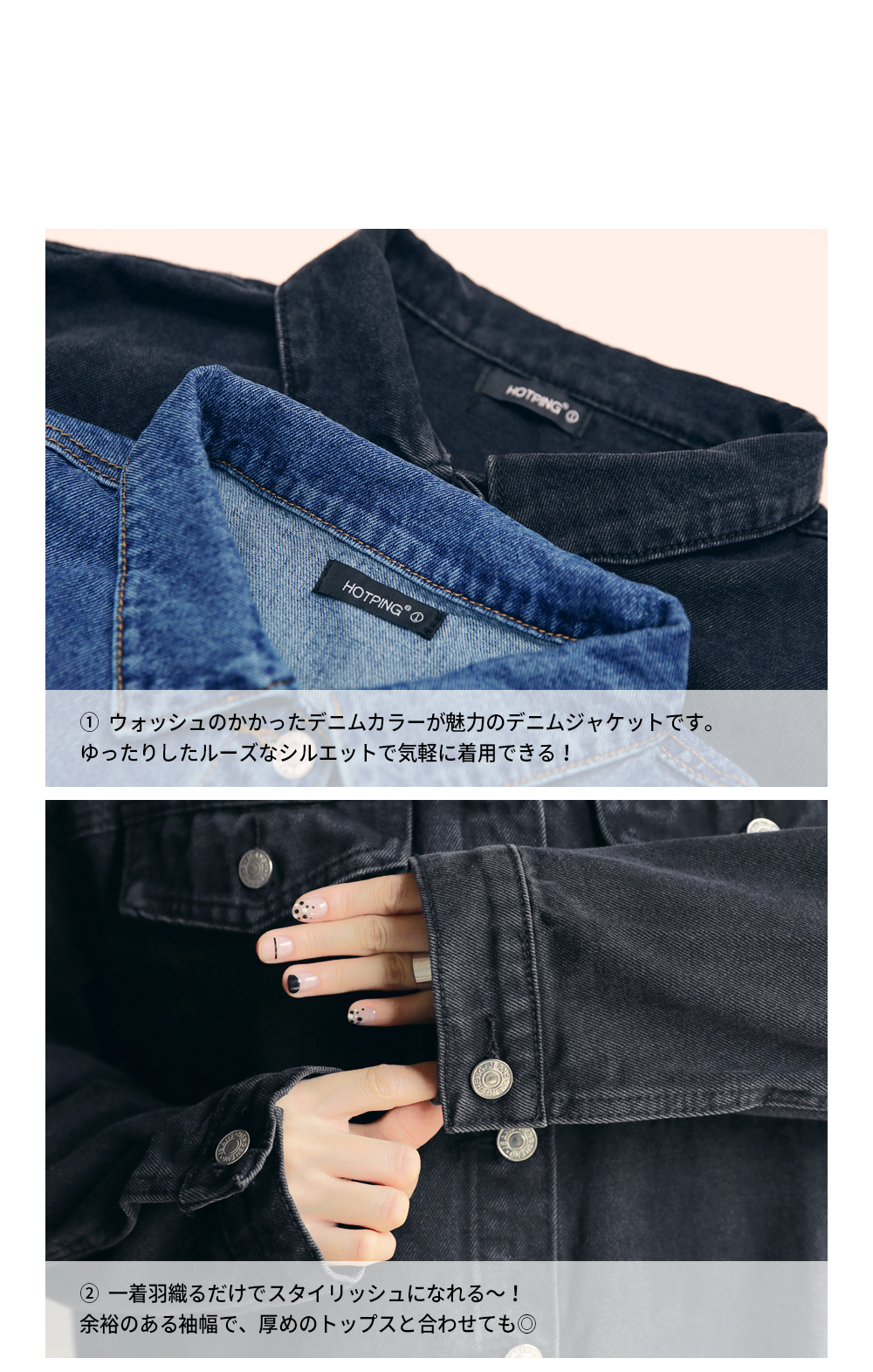 余裕のあるルーズなフィット感で負担なく着れるアイテムです。さらっと羽織るだけでスタイリッシュにキマる定番アイテム★デニム、ブラックカラーでカジュアルコーデ、ロングワンピース、スキニーなど色んなコーデに使えちゃうこと間違いなし!フロントポケットでポイントを+、ドロップショルダーで女性らしいシルエットに♡程よい丈感でレイヤードコーデも楽しめます◎両サイドのポケットで実用性も+したデニムジャケットです!