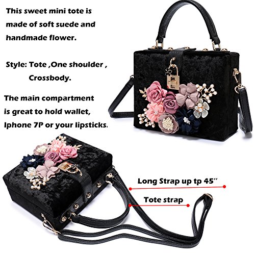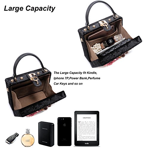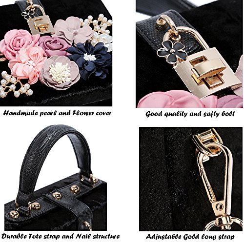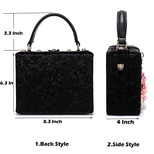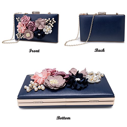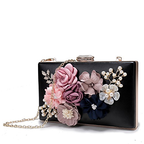 -. Feature : ✔Large Capacity: The main compartment fit up 7 Plus well, mirror, a folding hair brush, small bottle of perfume, lipstick, jewelry. / ✔Flower Design: the surface decorated by the variety pearl and flowers which are made of satin and PU. The exquisite and elegant style made you 100% attracts lots of admiring glances. / ✔Superior metal frame construction with shiny and fashion pearl outside and soft satin lining. It is easy to clean with ordinary waterproof (but please do not soak in the water) / ✔Dimensions : 7.7 in (L) X 1.2 in (W) X 4.5 in (H), weight is 1.06LB. With a gold chain strap (48 inches) Good for shoulder and crossbody style, tote style. / ✔Unique design: Good evening clutch bag are perfect for night out, date, cocktail party, family reunion, prom, banquet and so on .