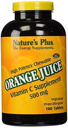 Studio : Nature's Plus Publisher : Nature's Plus Binding : Health and Beauty Product Description Orange Juice C 500mg by Nature's Plus 180 Chewable Orange Juice C 500mg 180 Chewable Product There's a reason why Vitamin C is the most well-known and highly regarded vitamin in the world This antioxidant affects many of the body's systems including the vascular system and natural defenses. These tangy and delicious chewables are a delightful source of daily Vitamin C. Suggested Use As a dietary supplement chew one tablet daily - Or as directed by your healthcare professional. Supplement Facts Serving Size 1 Chewable Tablet Servings Per Container 180 Amount Per Serving Daily Value Calories 10 Total Carbohydrate 2 g 1 Sugars 2 g Vitamin C (as ascorbic acid) 500 mg 833 Percent Daily Values are based on a 2 000 calorie diet Other Ingredients Fructose natural orange flavor magnesium stearate silica beet juice natural color natural orange juice pulp orange juice crystals orange exocarp lemon bioflavonoids (from Citrus limon fruit) rutin hesperidin acerola cherry (Malpighia glabra fruit) ro 0
