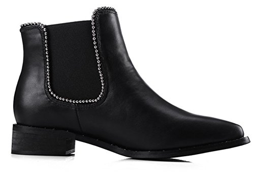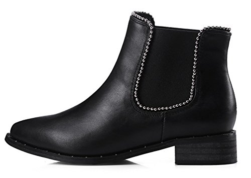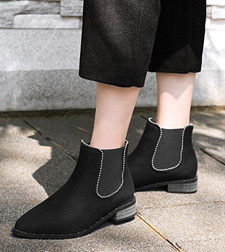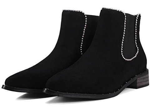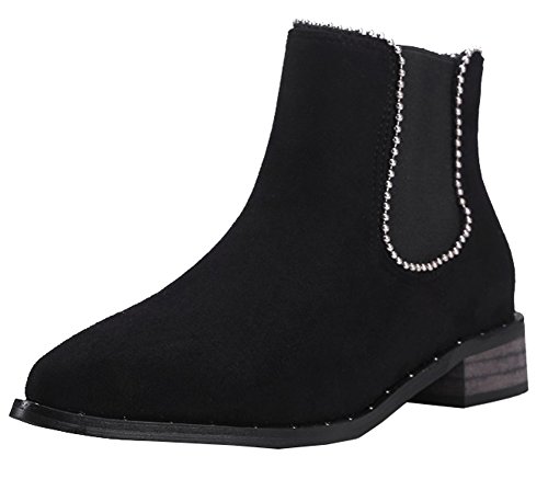 Binding : Apparel Product Description This pair of shoes is for women, girls, juniors and young ladies. You will look fashionable and casual when wearing them. The heels measure 1.2 inches. You will feel comfy in their low heels. This pair of shoes features solid waterproof upper which will keep you warm all the winter. You will look chic in their pointy toe. It's easy for you to get on and off in their elastic closure. The shaft is about 4.3 inches which could keep your ankle warm. The sole is made of good rubber. You will feel comfortable in their soft bottom. They are of high quality and durable. You could match them with all cold weather outfit. Want to be fashionable lady? Just pick these chic boots. 0