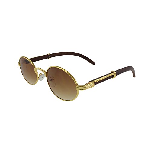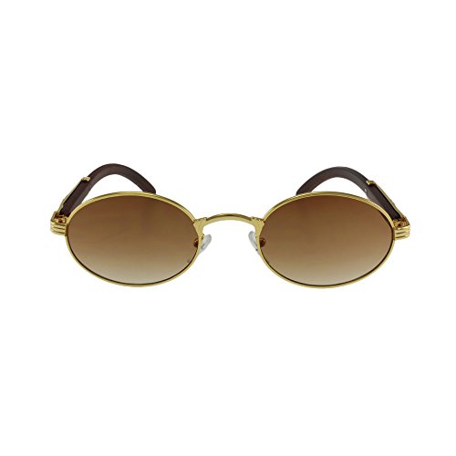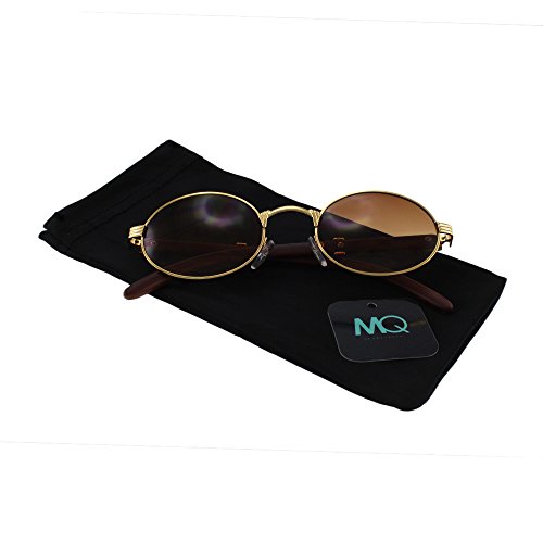 MQ Sunglasses - Huncho - Oval Shaped Sunglasses with Woodgrain Temples includes Microfiber Pouch