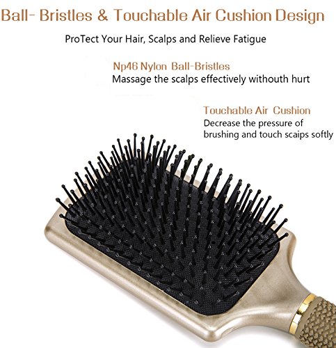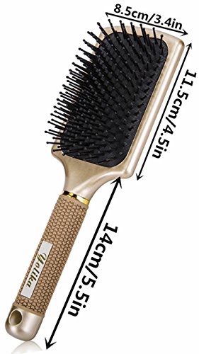 -. Binding : Misc. -. Brand : Yolika -. EAN : 0759624239524 -. Feature : GOLD COLOR & TOUCHABLE AIR CUSHION: Join the most popular color recent years.Perfect for men, women and kids.Touchable air cushion can decrease the pressure of brushing and touch your scalps softly. Don't worry about hurting your hair anymore because of the power. / SMOOTH FOR ALL HAIR TYPES: Yolika Paddle & Detangler brush has a unique wide teeth design that detangles your hair smoothly. It can slide through even the curliest, most knotted up, gnarly hair gently, quickly and painlessly. it can be used on all hair types (thick, curly, straight ,wet or dry hair ) ,also works on extensions and wigs. / COMFORTABLE RUBBER HANDLE: The ergonomic rubber material is nice to touch and offers a warmer feel than plastic. This handle help to reduce vibration, enabling a more comfortable and secure grip. Help you quickly and effectively comb your hair when you are rush to work in the morning. / STIMULATES AND MASSAGES SCALP THOROUGHLY: The extended nylon pinballs are great to massage and stimulate the scalps. This means it can replace your fingertips, if you are feeling lazy. Apply your preferable hair oil and move the brush on your scalp in circular motions. Let you relax yourself and relieve your fatigue at home after busy work. / SATISFACTION GUARANTEED: If there are any problem with your Yolika Paddle & Detangler brush within 12 months, return it, and we'll give 100% of your money. -. IsAdultProduct : 0 -. Label : Yolika -. Manufacturer : Yolika -. MPN : Yoli0809001 -. PartNumber : Yoli0809001 -. ProductGroup : Beauty -. ProductTypeName : BEAUTY -. Publisher : Yolika -. Studio : Yolika -. Title : Velvet Touch Paddle Hair Brush by Yolika-Detangling Brush for Wet/ Dry Hair Straightening & Smoothing for Men ,Women & Kids (GOLD) -. UPC : 759624239524