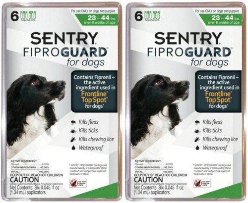 Studio : Sergeants Publisher : Sergeants Binding : Misc. Product Description Sentry Fiproguard Flea Tick Topical for Dogs is a trusted squeeze on to protect your pet from fleas and ticks. It's recommended by veterinarians. It's water-proof and can be used on breeding, pregnant and lactating dogs. It is suitable for dogs weighing between 23 to 44lbs. Sentry Fiproguard Flea Tick Topical for Dogs. Controls re-infestation of larvae up to 3 months. Sustained-release formula offers protection for up to 30 days. Kills all stages of the flea - including adult fleas, flea eggs, flea larvae and the development of flea pupae. 0