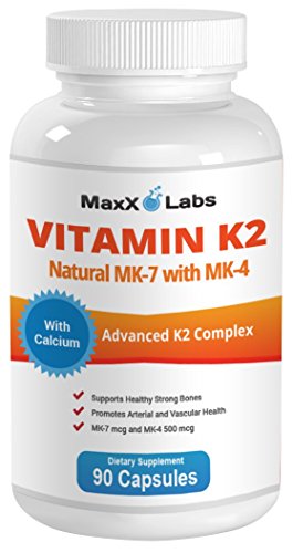 -. Feature : MAXX LABS VITAMIN K2 COMPLEX IS THE PLATINUM STANDARD for Vitamin K Complex supplements / FORMULATED FROM 100% NATURAL NON-GMO NATTO - MaxX Labs MK-7 Vitamin K2 is a biologically active form of Vitamin K2, in combination with MK-4 Vitamin K2 (from Menaquinone) and Calcium / DIRECTS CALCIUM TO WHERE IT'S NEEDED FOR STRONG BONES - Vitamin K2 and its dependent proteins have been clinically proven to reduce arterial calcification and more importantly direct calcium for strengthening bones and away from clogging arteries / MAXX LABS VITAMIN K2 HAS SUPERIOR BIO-AVAILABILITY - and enhanced stability, formulated as a vegetarian capsule free of gluten, GMOs, solvents, preservatives, artificial ingredients, and allergens / 100% MONEY BACK GAURANTEE - The risk is always ours! If you are not fully satisfied with our product for any reason you may return it for a full refund . . . even an empty bottle - No Questions Asked. Click the "Add to Cart" button and get on the road to feeling better today!