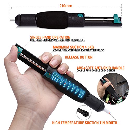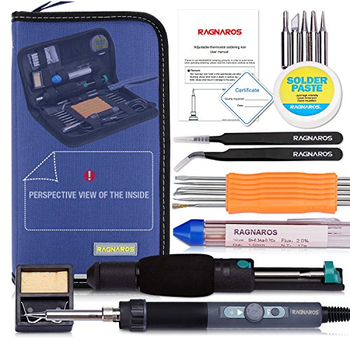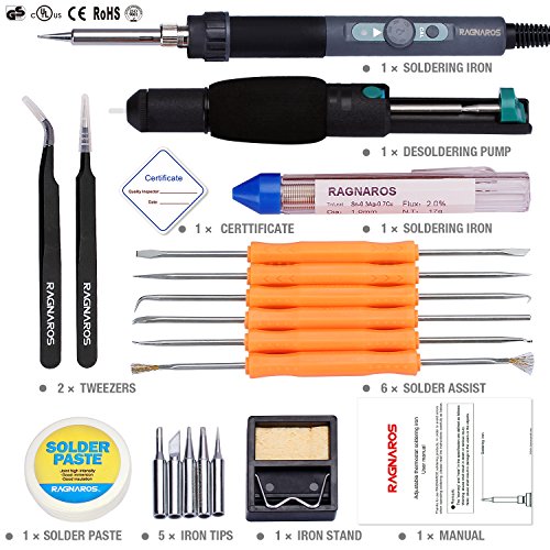 - YOU CAN GET: full set 18-in-1, the excellent structural design ensured you can easily get any of the assistant components which you will be in need, easy for storage as well; assembled with 5pcs soldering iron tips, 2pcs anti-static tweezers, solder sucker, solder wick, rosin, cleaning sponge and 6pcs aid tools in the organized case.