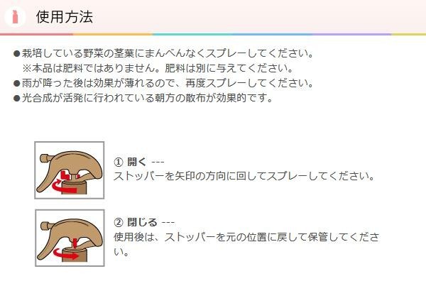 | セット内容 | 野菜の肥料の吸収を高めるスプレー×5 |