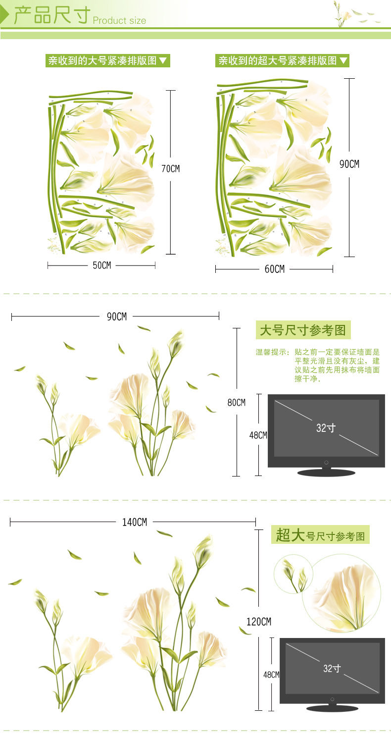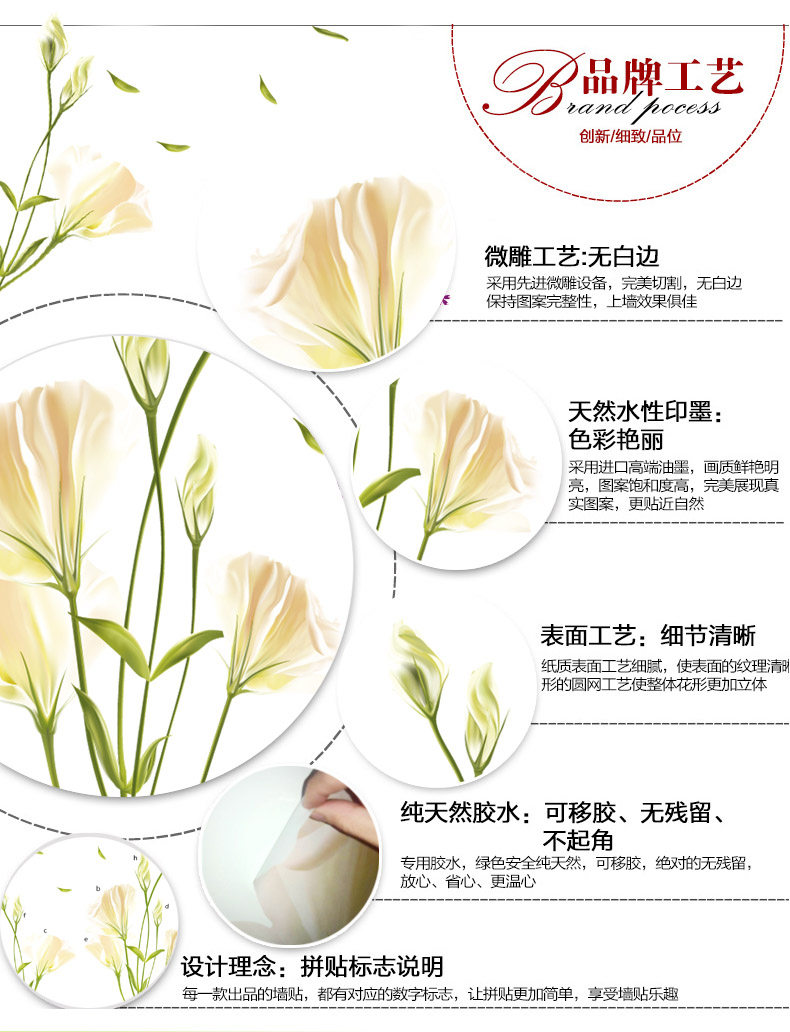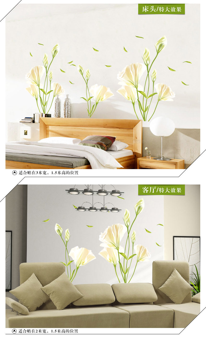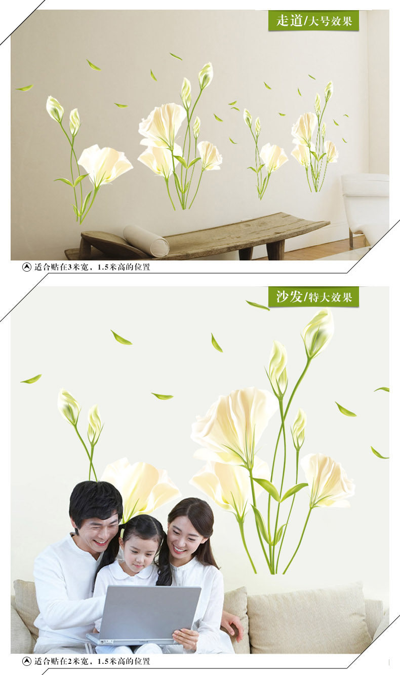 百合花墙贴 可移除客厅电视墙沙发背景卧室浪漫温馨贴纸贴画