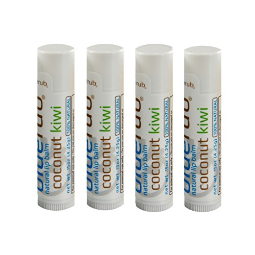 FOUR 0.15 ounce tubes of BLUERUB Moisturizing Lip Balm, Beeswax, with a hint of Coconut Kiwi Oil