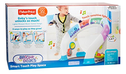 - 3 ways to play as baby grows! Mode 1 – Piano Play Perfect for the sitting baby as baby sits in the middle and touches the bar for piano tones, music & lights! Mode 2 – Dance Party Encourages baby to get up and move with upbeat music, spoken phrases, sounds &