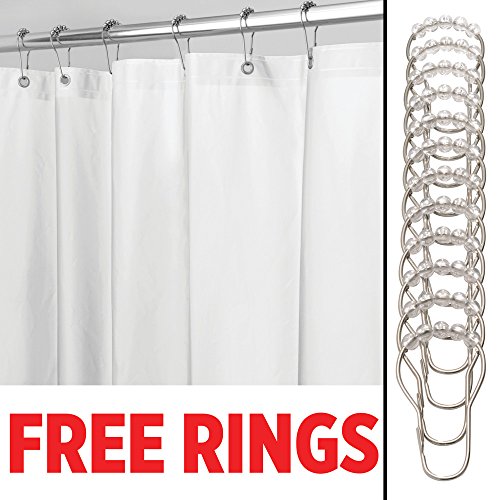 InterDesign Mildew-Free EVA 5.5 Gauge Shower Liner with 12 shower hooks, 72 x 72, Frost