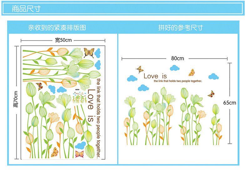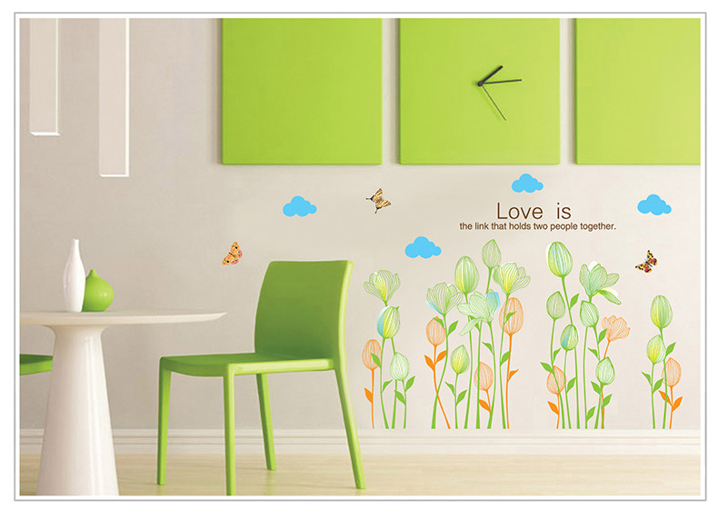 可移除客厅背景墙贴纸贴画踢脚线玄关装饰画绿色芦苇小草白云英文