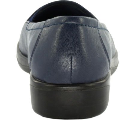 -. Feature : Loafer-style flat featuring slight wedge heel and elastic stretch panel under vamp / Flexible lightweight construction