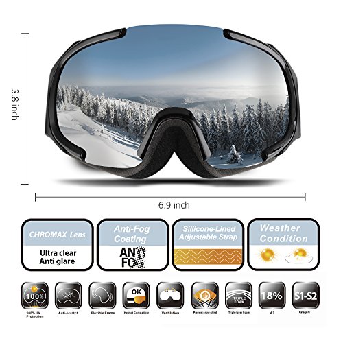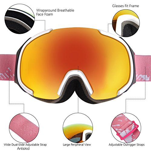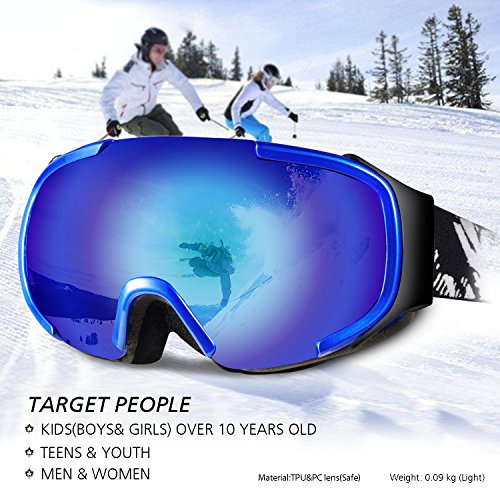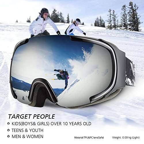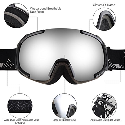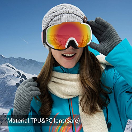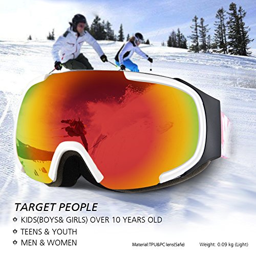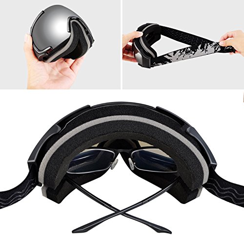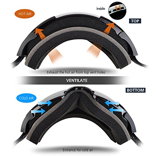 ·Spherical half frame ski snow goggles comes with wider visibility and designed based on human engineering hence the upgrade postposition makes less interference to eyes view. · The sphere design provides bigger space between lenses to eyes which could be also used as OTG ski goggles. Profit brought by this idea is significant anti-fog function: there is enough cyclic room for air comes from vent that reduce the chance to making fog, sphere surface enhance the distance between lens and eyes, vapor from eyes will not reach to lens to make mist. · The shock-resistance and non-deformability are much better than cylinder lens.
