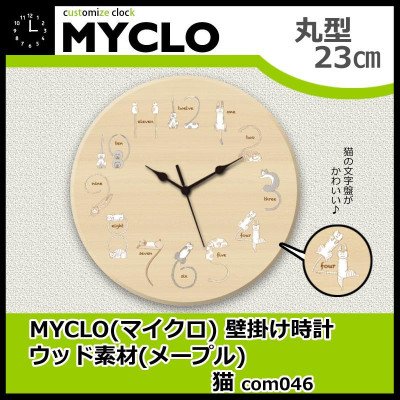 -. Title : MYCLO(マイクロ) 壁掛け時計 ウッド素材(メープル) 丸型 猫 23cm com046