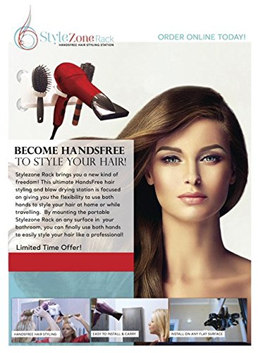 - ★High Quality- Stylezonerack Hair Dryer Holder with a high quality rack firmly, and 4 super rubber suction cups. you can put Hair Dryer Holder in the bathroom、bedroom, or living room, and Hands Free lets you feel free to style your hair, brush your teeth, play games, clean the table and so on