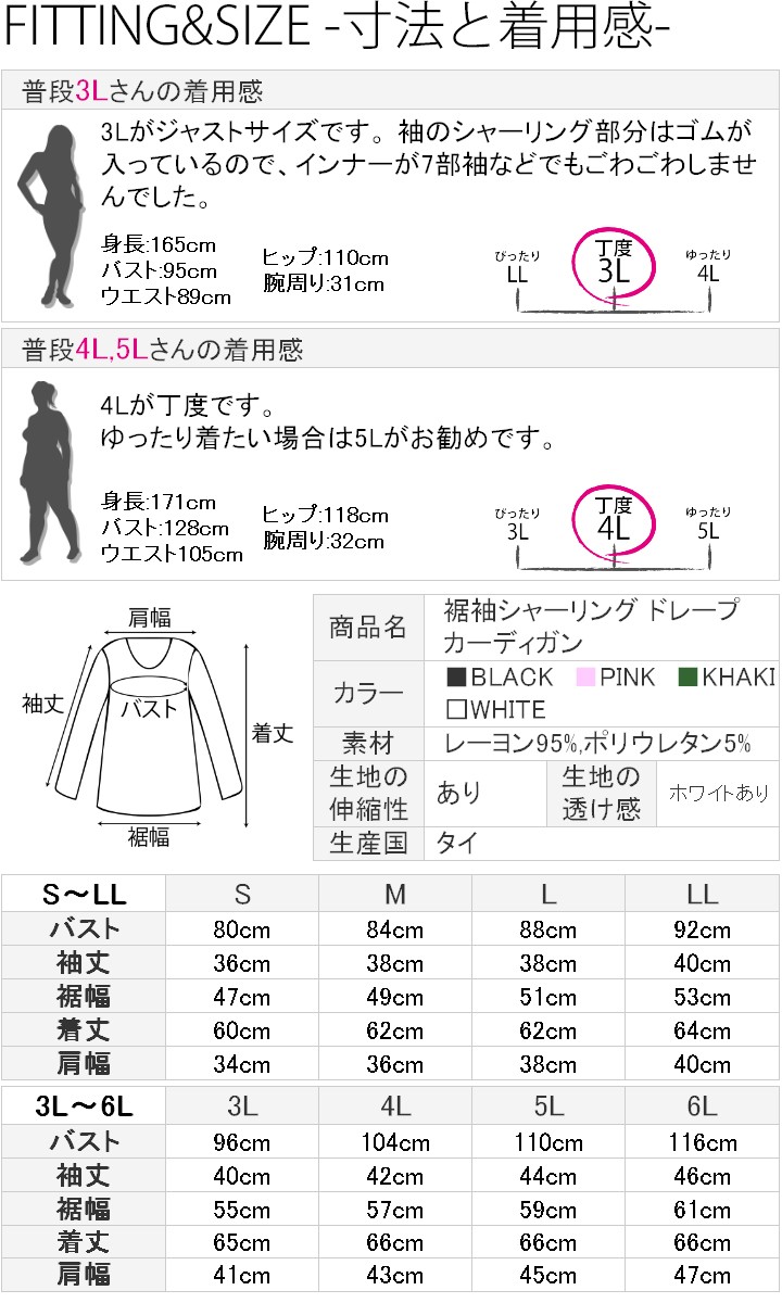 裾袖シャーリング ドレープカーディガン(Q) 大きいサイズ 春 セクシー レディース ギャル服 ギャル 大人 13号 15号 17号 19号 LL 2L 3L 4L 5L 6L 6L