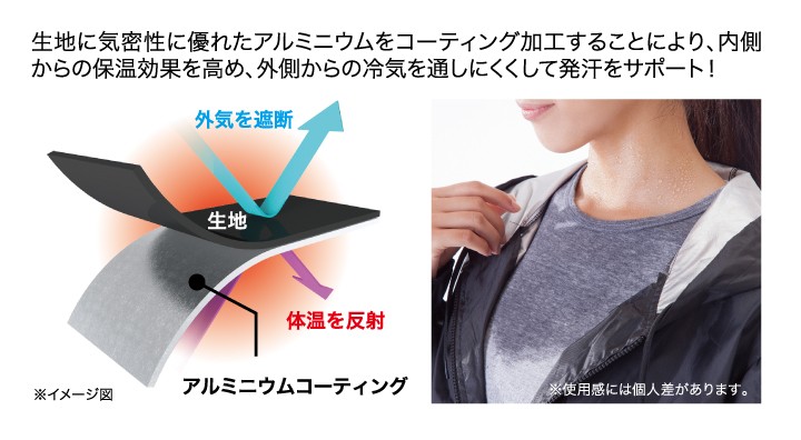 | ご使用上のご注意 | ●お肌に合わない場合や、かぶれ・かゆみ等を感じた場合は速やかにご使用を中止して、医師等にご相談ください。 ●肌着の上から着用してください。 ●妊娠中の方や妊娠の可能性のある方はご使用しないでください。 ●就寝時はご使用しないでください。 ●傷・はれもの・湿疹等、お肌に異常がある場合や通院中の方は医師等にご相談ください。 ●本品は保温性に優れた素材の為、日差しの強いところでの長時間のご使用は、内部の温度が著しく上昇しますのでご注意ください。 ●急激な発汗により脱水症状を引き起こす可能性がありますので、水分補給を十分に行ってください。 ●汗等で生地が体に密着する場合があり、無理をして着脱すると生地が裂けるおそれがありますのでご注意ください。 ●火気のそばや高温多湿な場所、直射日光の当たる場所には保管しないでください。 ●乳幼児の手の届かない場所に保管してください。 ●本来の目的以外ではご使用しないでください。 ●印刷の都合上、多少色が異なる場合があります。 |