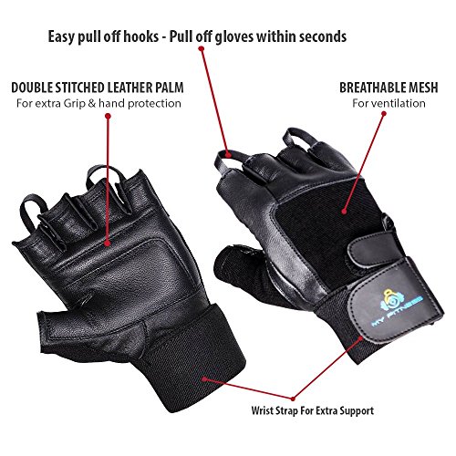 After much trial and testing we at MY fitness we have designed our new Unique Weight Lifting Gloves with Built in Wrist Straps. They are made premium Quality Leather and have extra Padding to eliminate blisters and avoid injuries