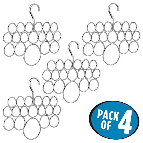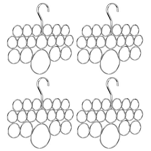 InterDesign Axis Scarf Hanger - Storage Organizer Rack for Scarves, Neck Ties, Belts, Shawls, Pashminas and Accessories - 18 Loops, Chrome, Set of 4